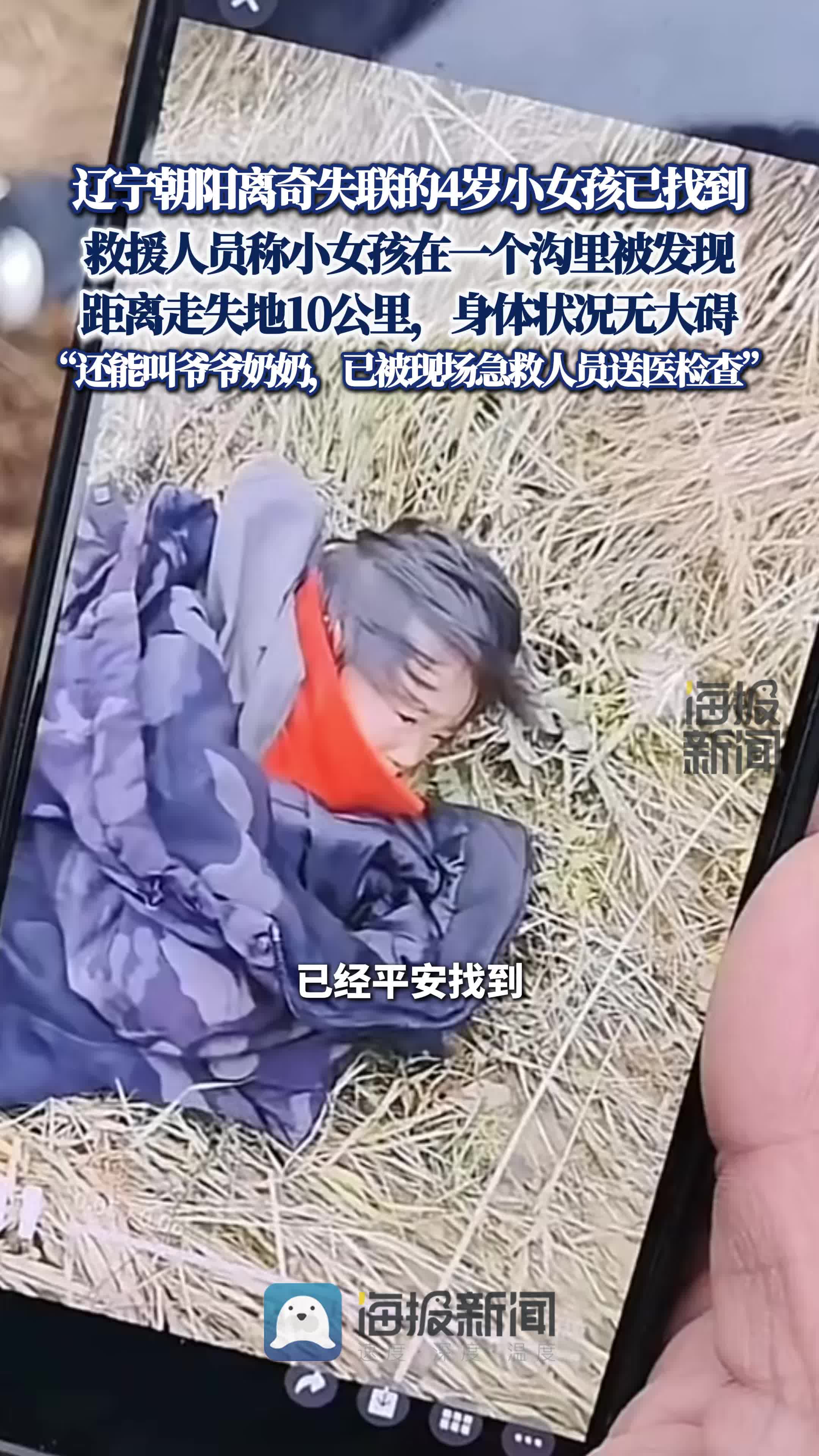 辽宁朝阳离奇失联的4岁小女孩已找到,救援人员称小女孩在一个沟里被发现,距离走失地10公里