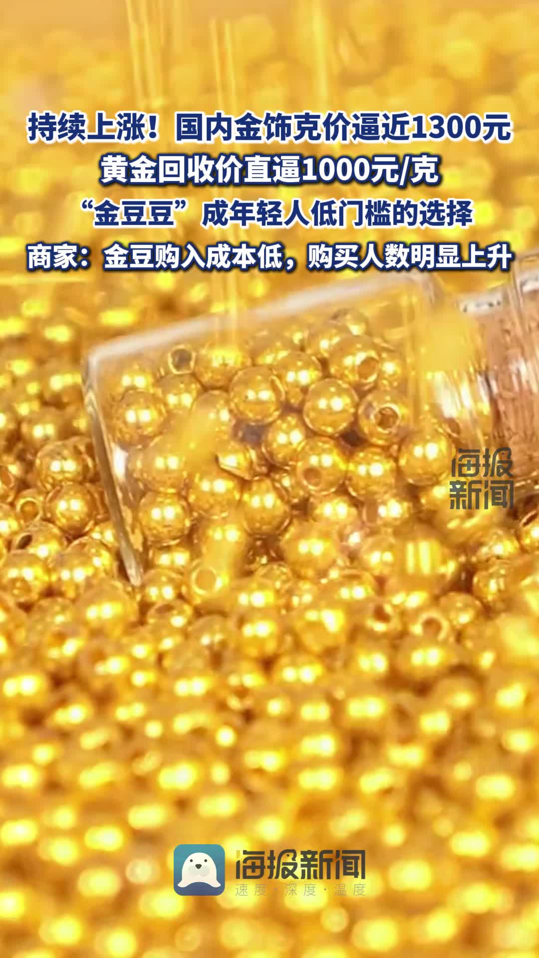 持续上涨!国内金饰克价逼近1300元,“金豆豆”成年轻人低门槛的选择 商家:金豆购入成本低,购买人数明显上升