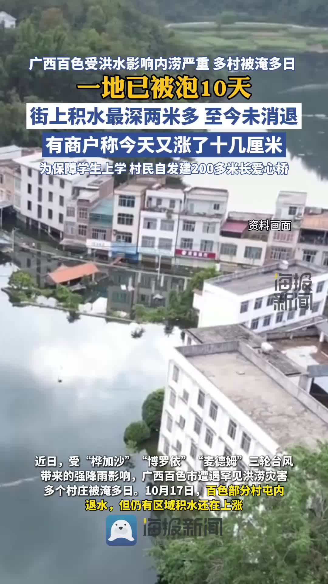 广西百色受洪水影响内涝严重,一地已被泡10天,街上积水最深两米多至今未消退