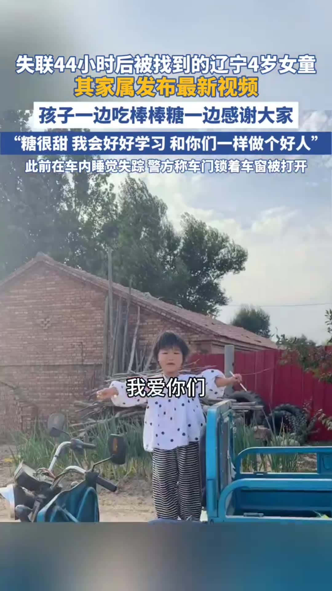 失联44小时后被找到的辽宁4岁女童 其家属发布最新视频