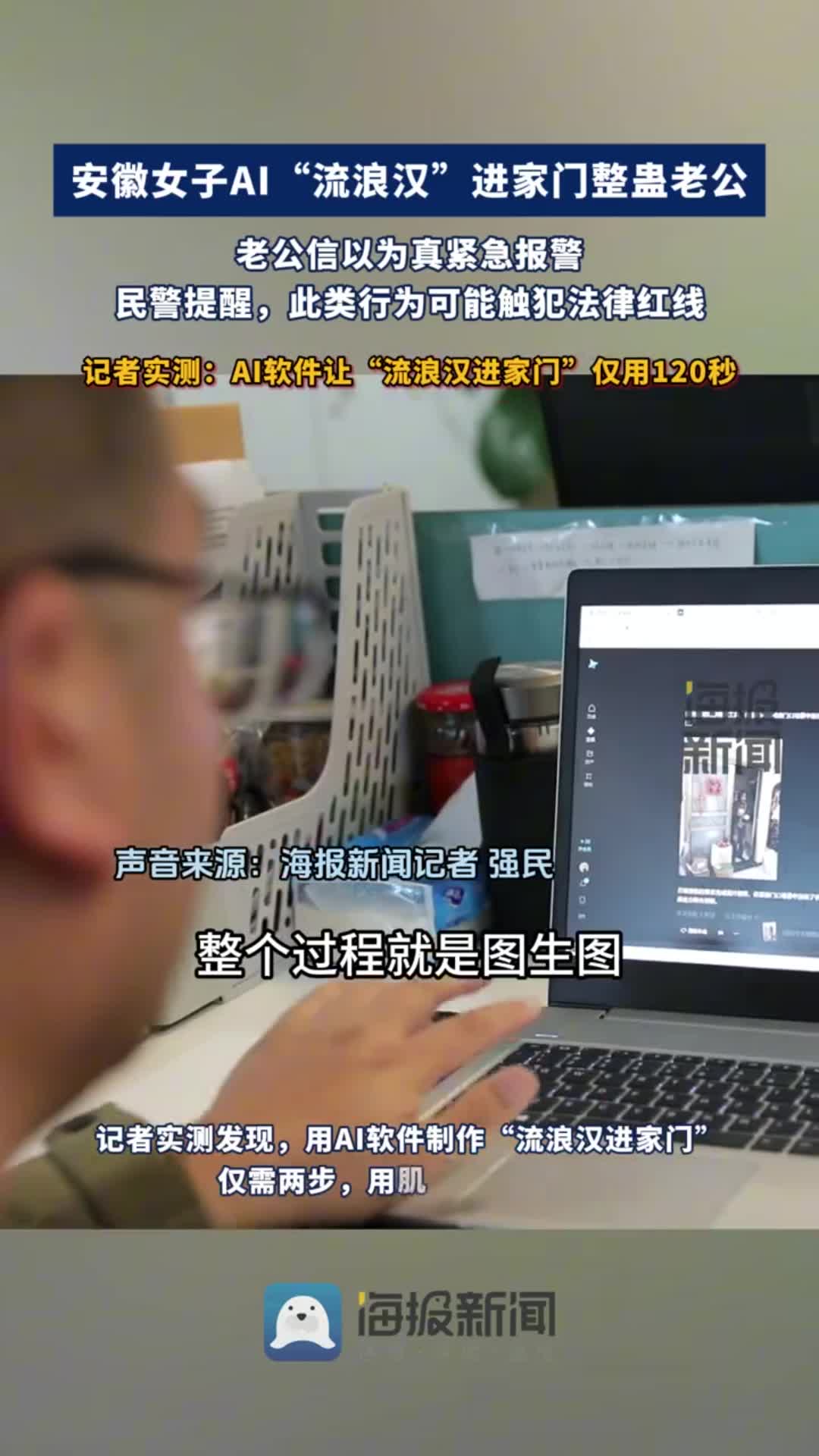 安徽一女子AI“流浪汉”整蛊老公,老公信以为真报警,记者实测,用AI制作“流浪汉闯家门”仅需120秒