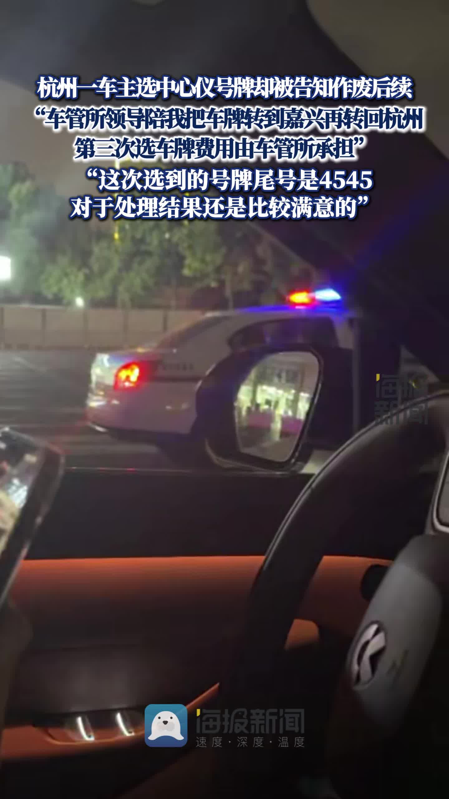 杭州一车主选中心仪号牌却被告知作废后续:“这次选到的号牌尾号是4545,费用由车管所承担”